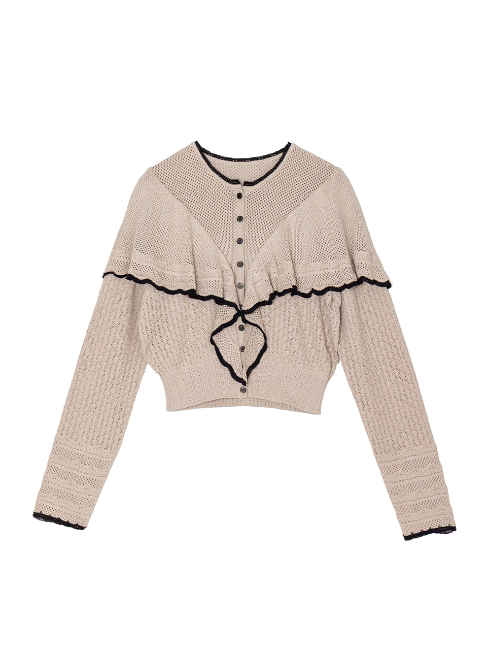 レーヨン素材をベースで使用し、柔らかく滑らかな着心地のカーディガンです。