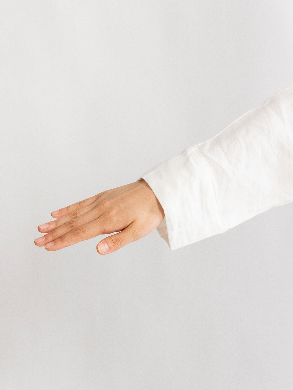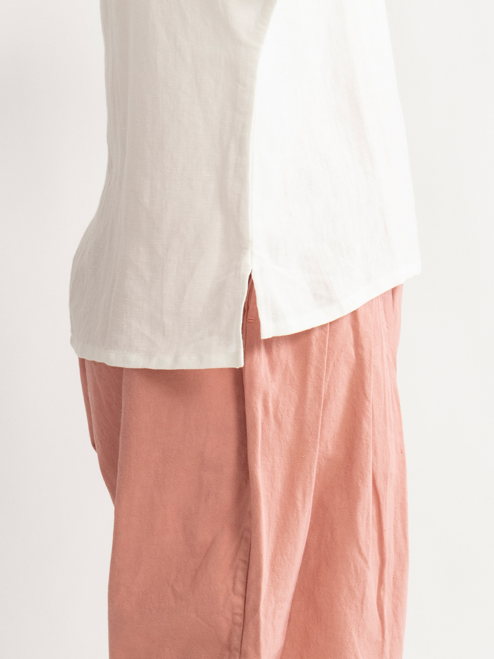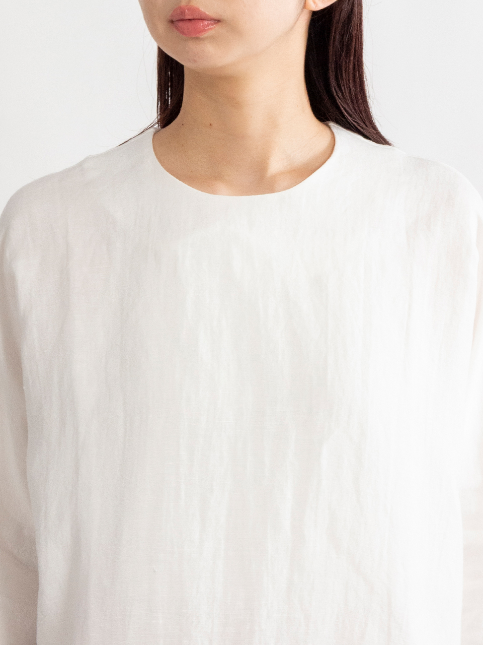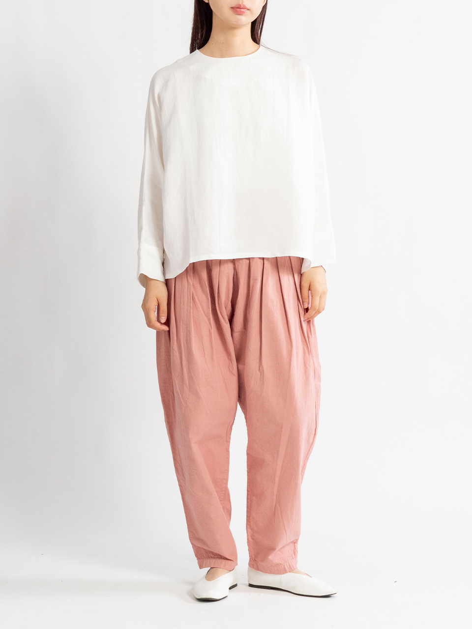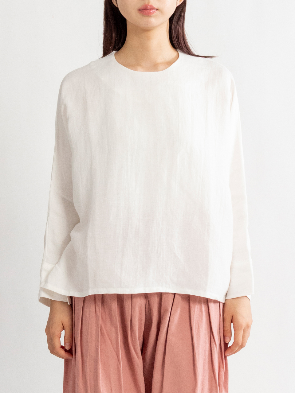 袖にカフスがあるミニマルなドルマンスリーブのトップス。