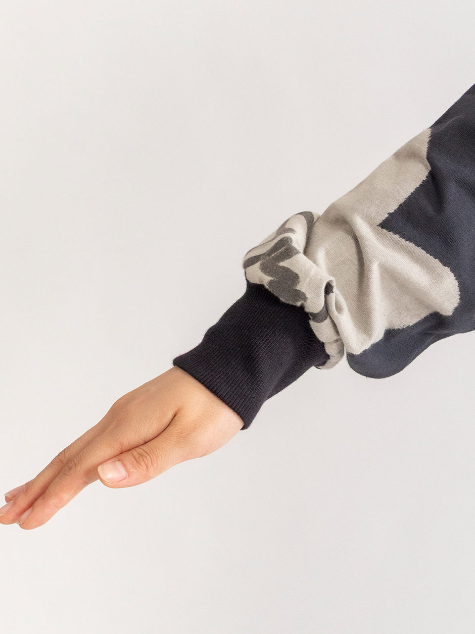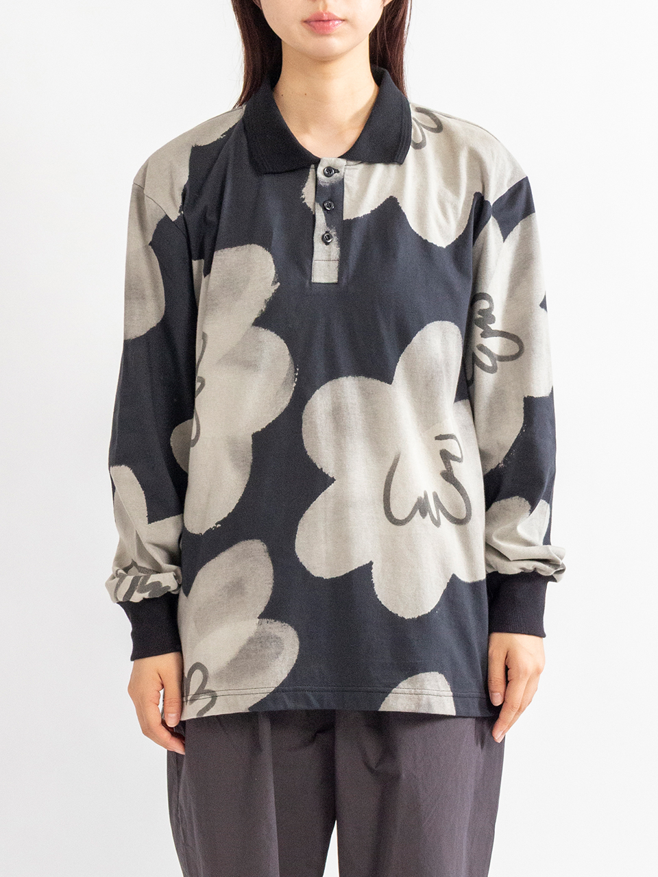 ゆったりとしたフィット感で、袖口にカフスがついたオーバーサイズの長袖ポロシャツです。