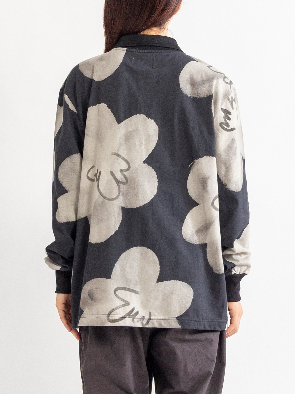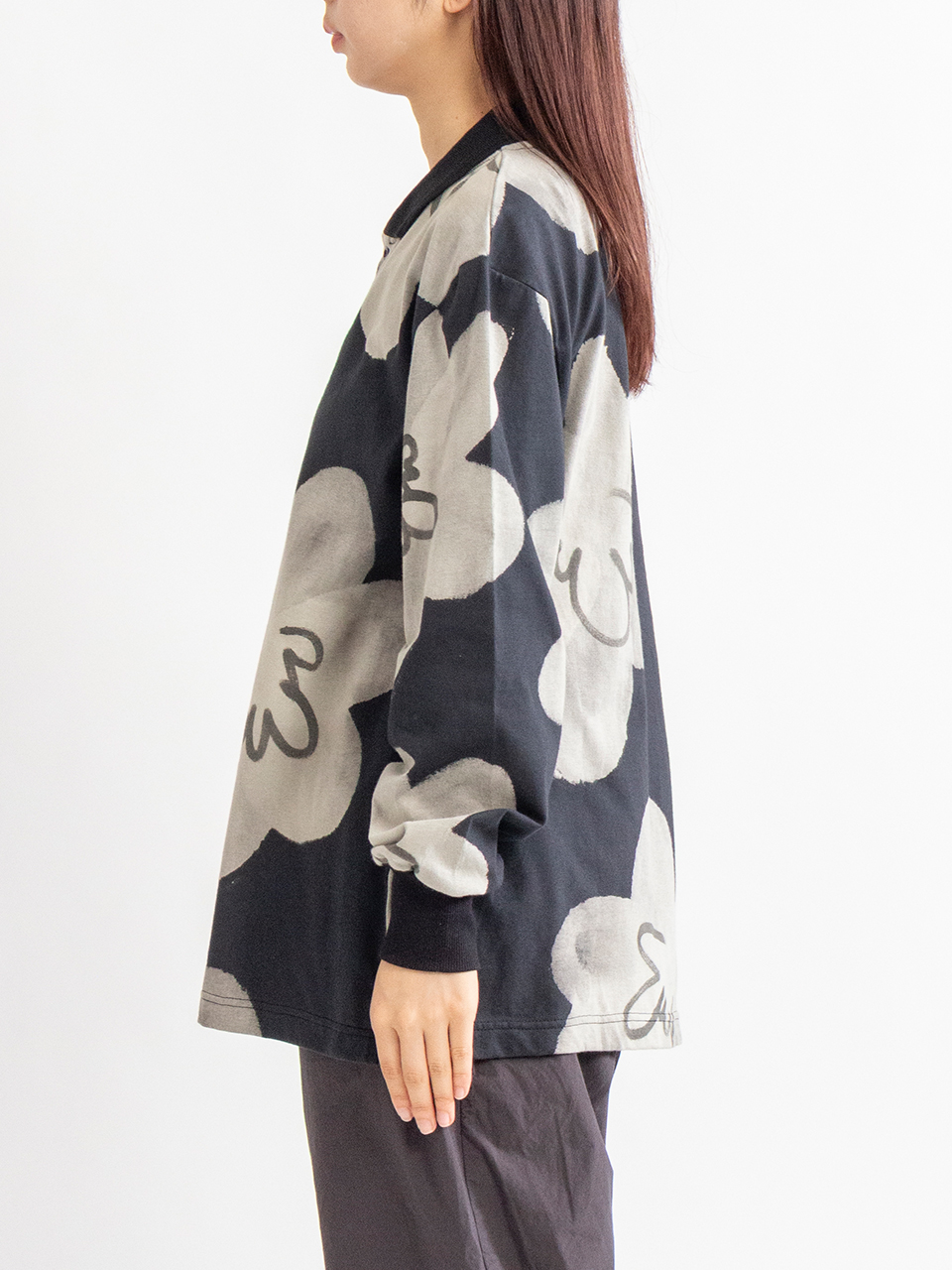 綿100%のオーバーサイズポロシャツで、手染めと手描きによって作られた一点物です。