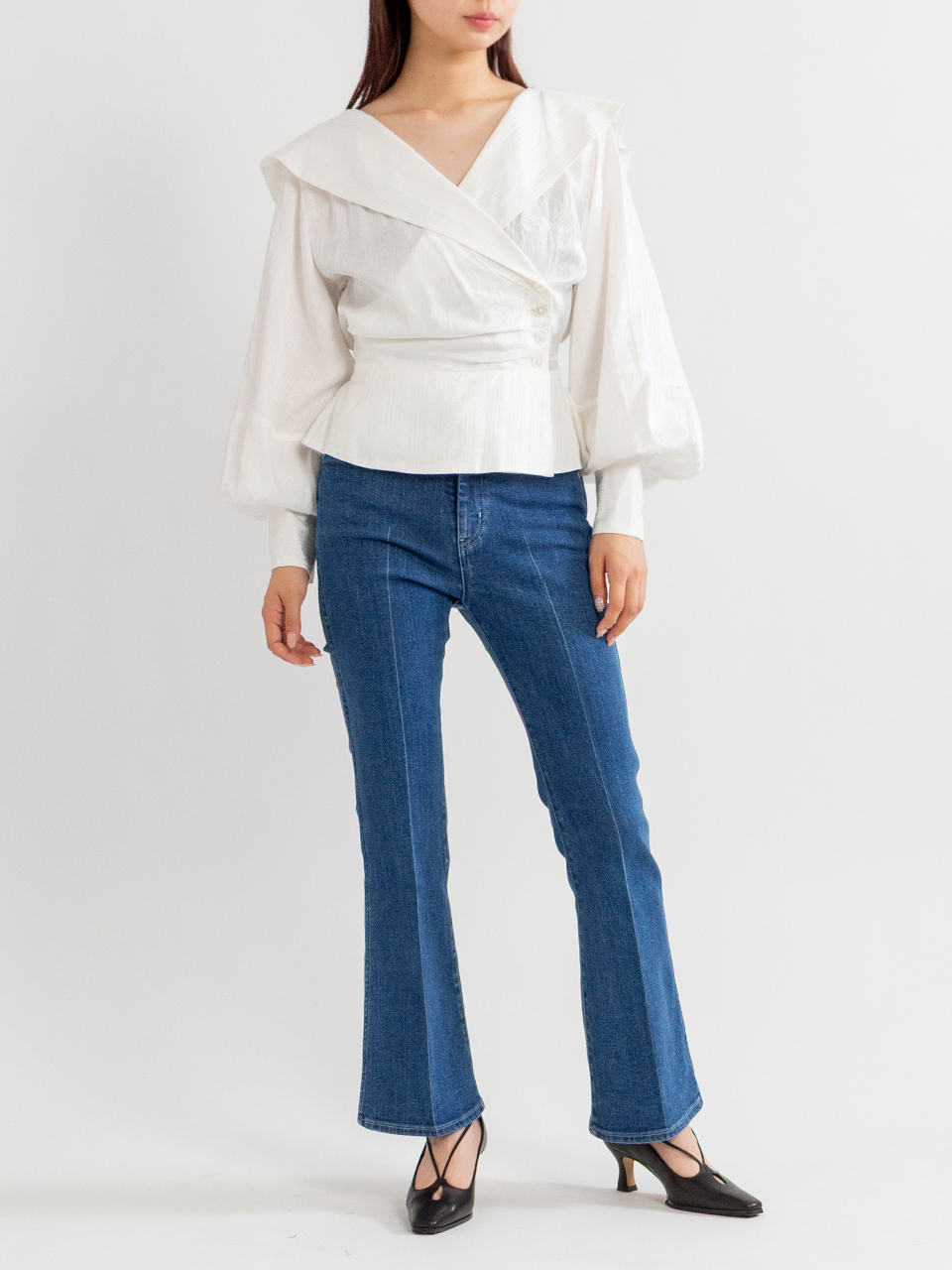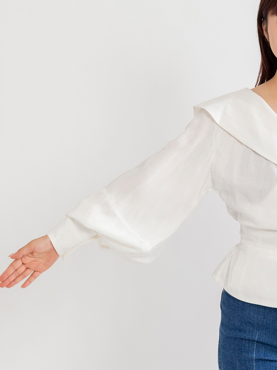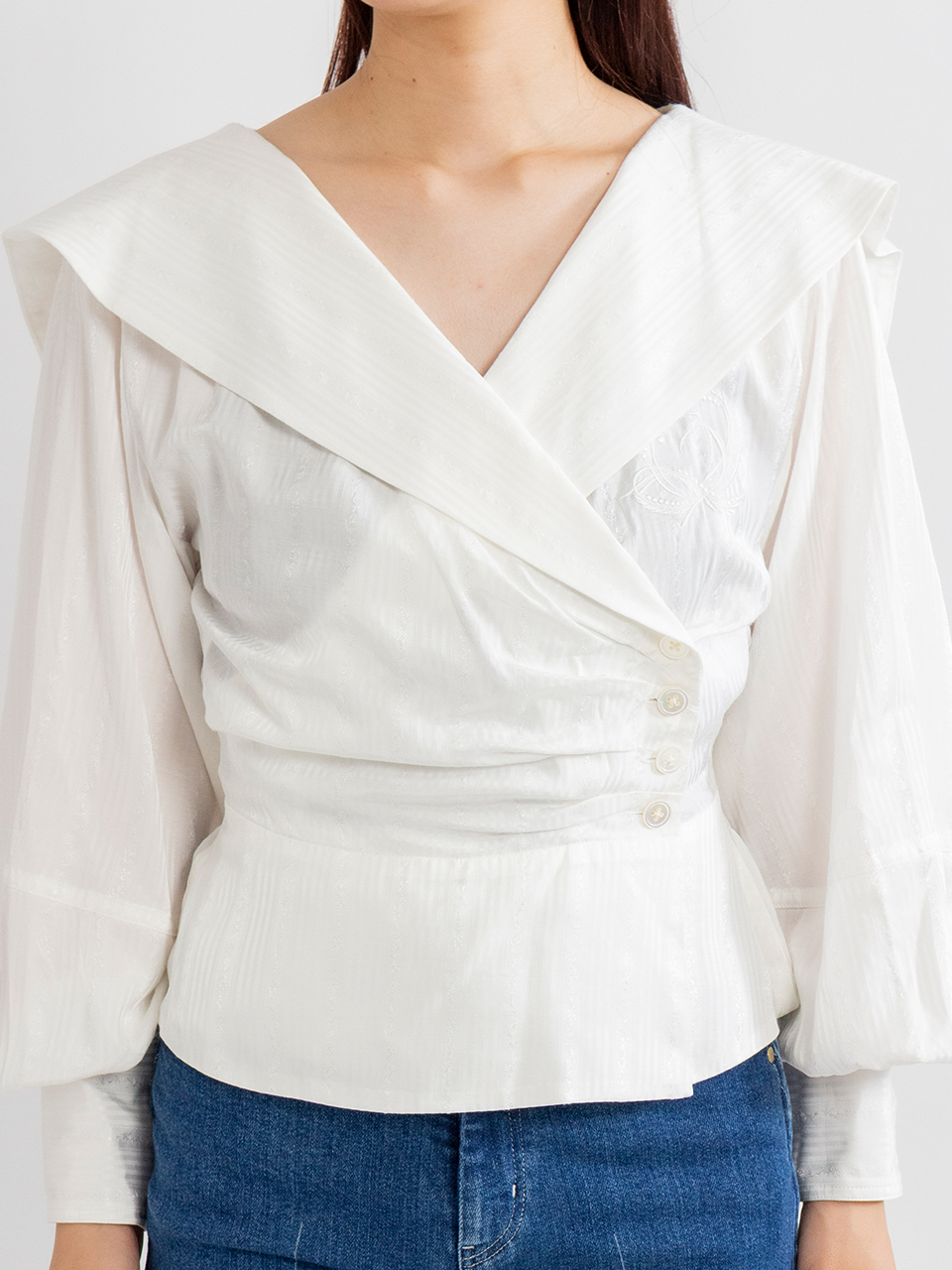 ROSE JAQUARD STRIPE SAILOR COLLAR BLOUSE