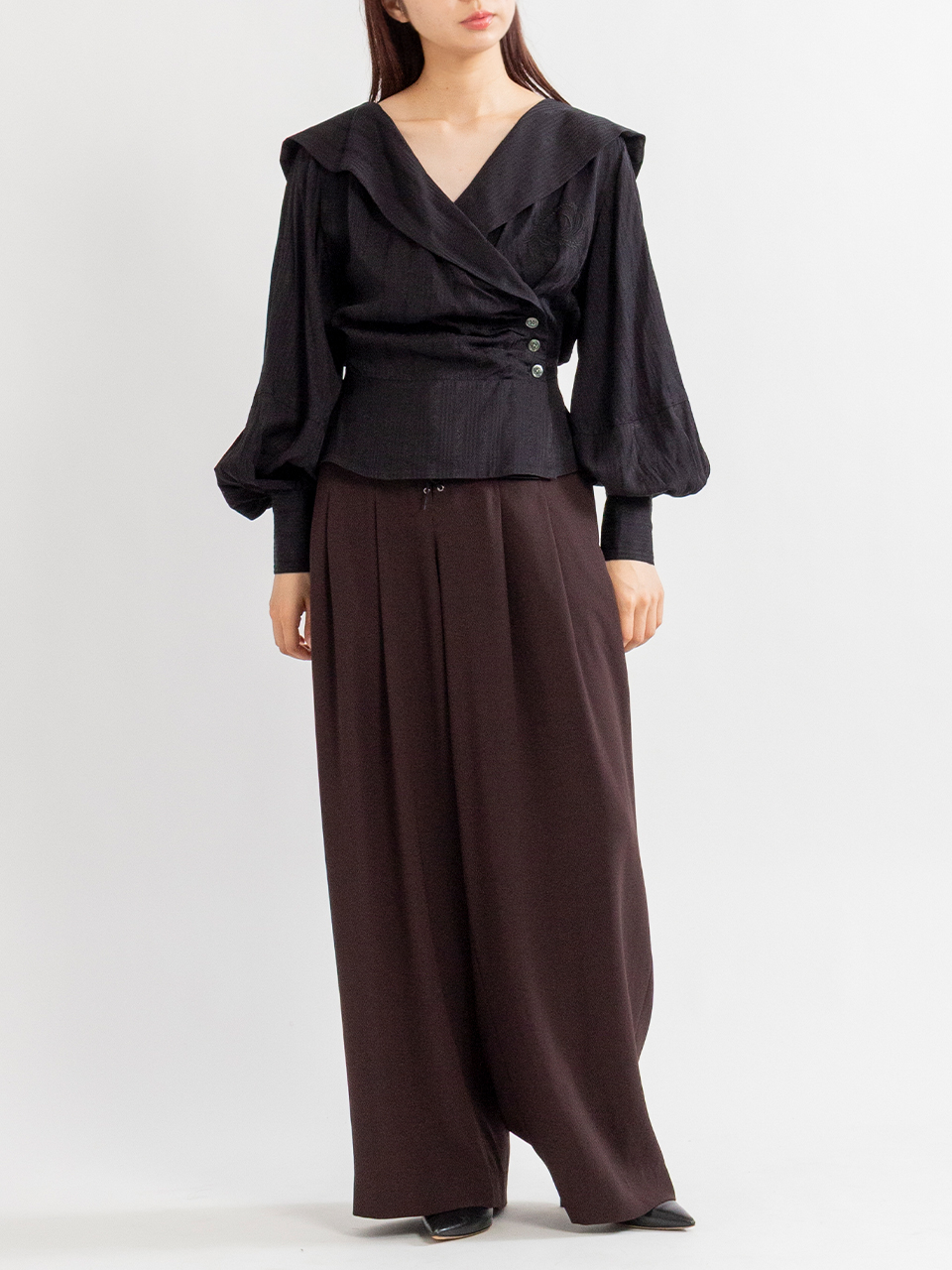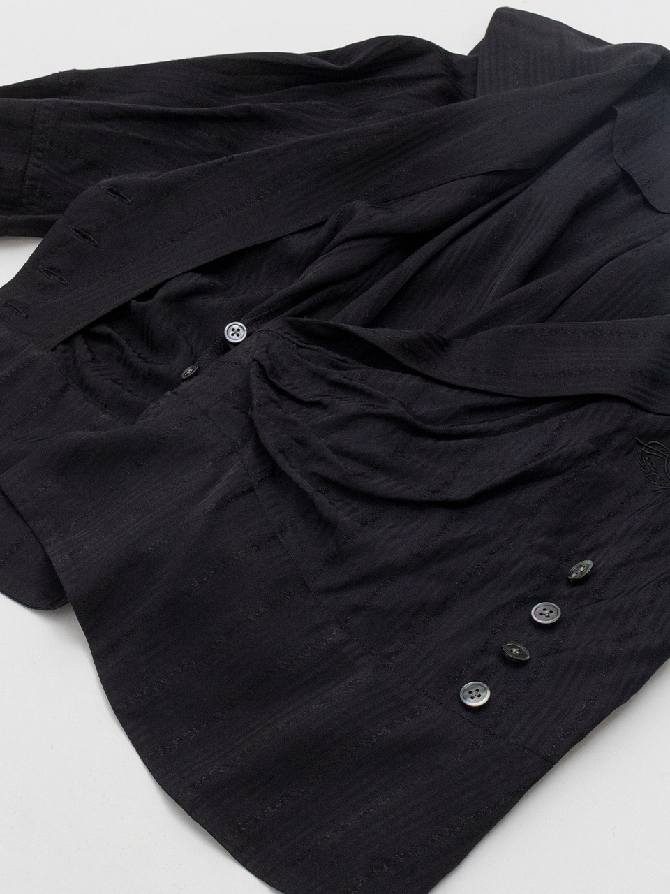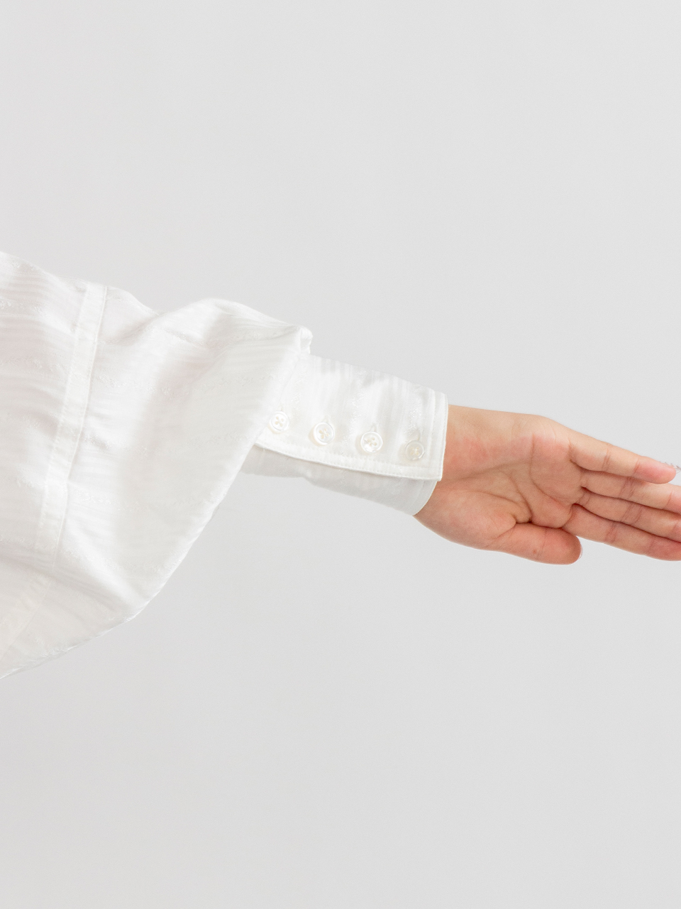 オリジナルのバラ柄ストライプが特徴のジャガードブラウス。