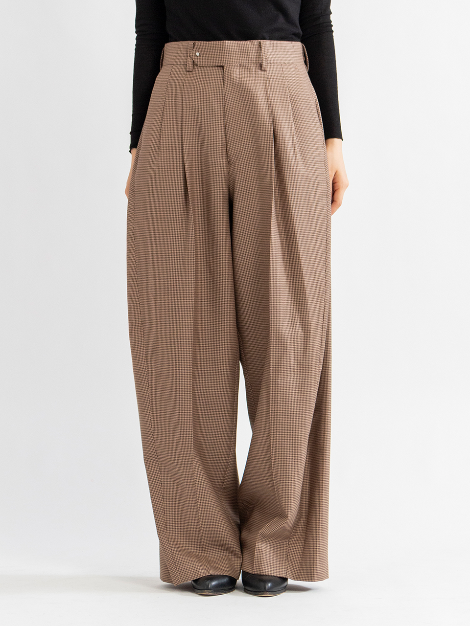 HOUNDSTOOTH BARREL-LEG PANTS