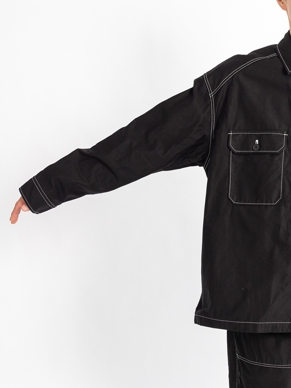バックサテンの仕打ち込みのしっかりとしたコットン生地を使用したシャツジャケット。