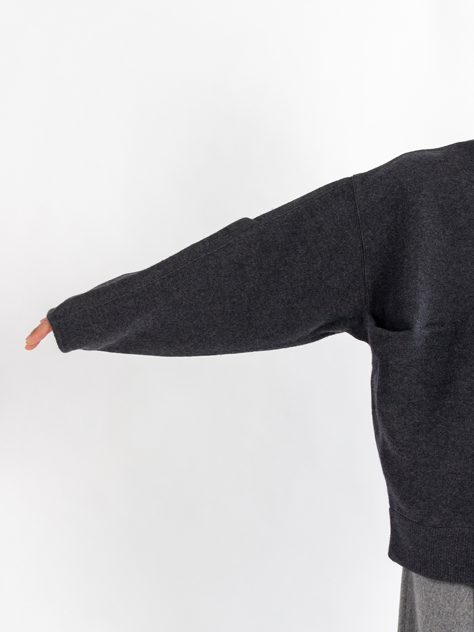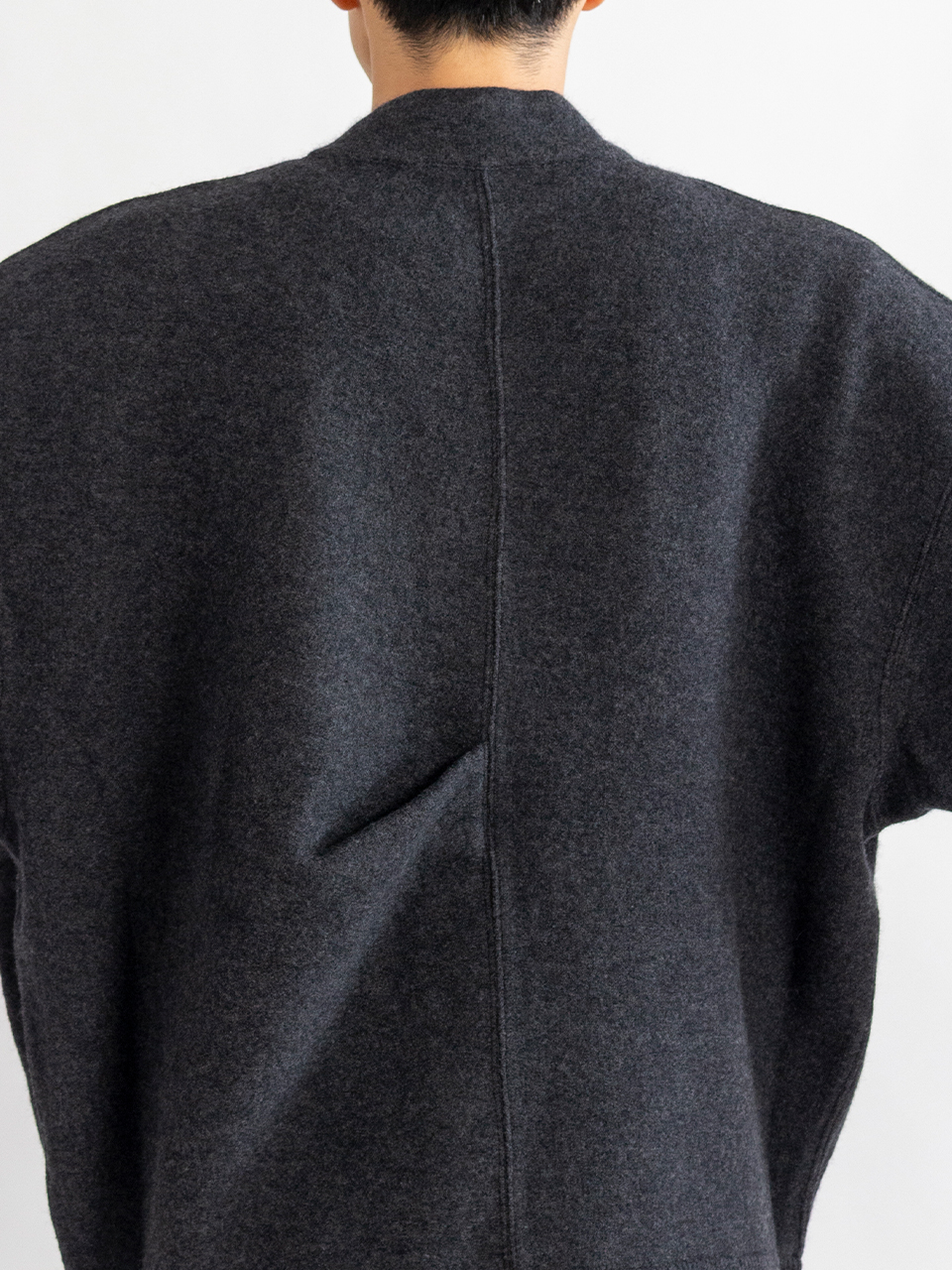 袖付部分、袖外側、後ろ身頃にタックを施し、膨らみのある独特のシルエットになっています。