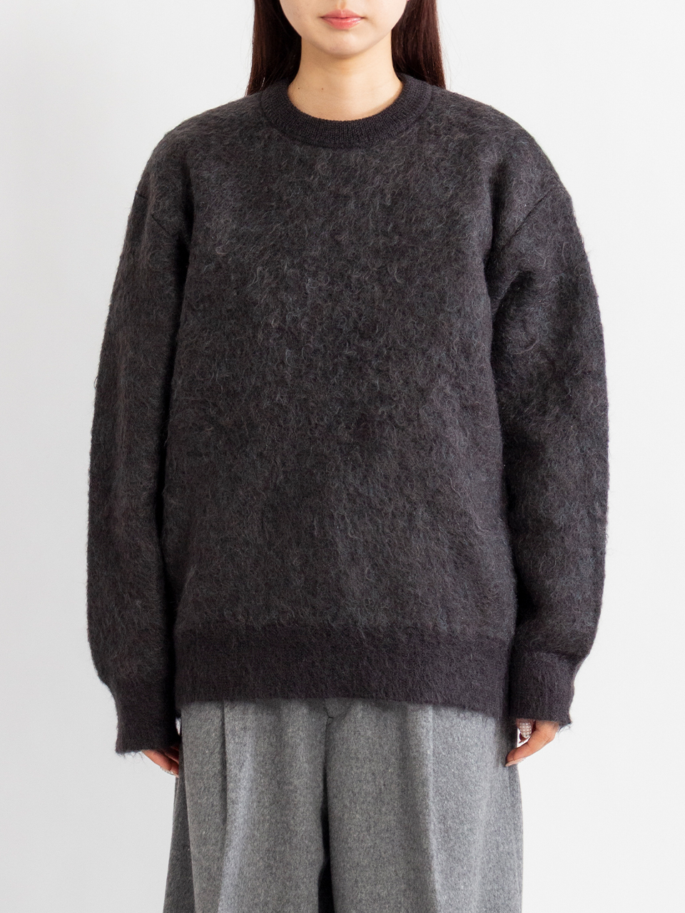 モヘアの中でも貴重な、滑らかで柔らかな着心地とふくらみのあるキッドモヘアを使用したクルーネックニットロングスリーブ。