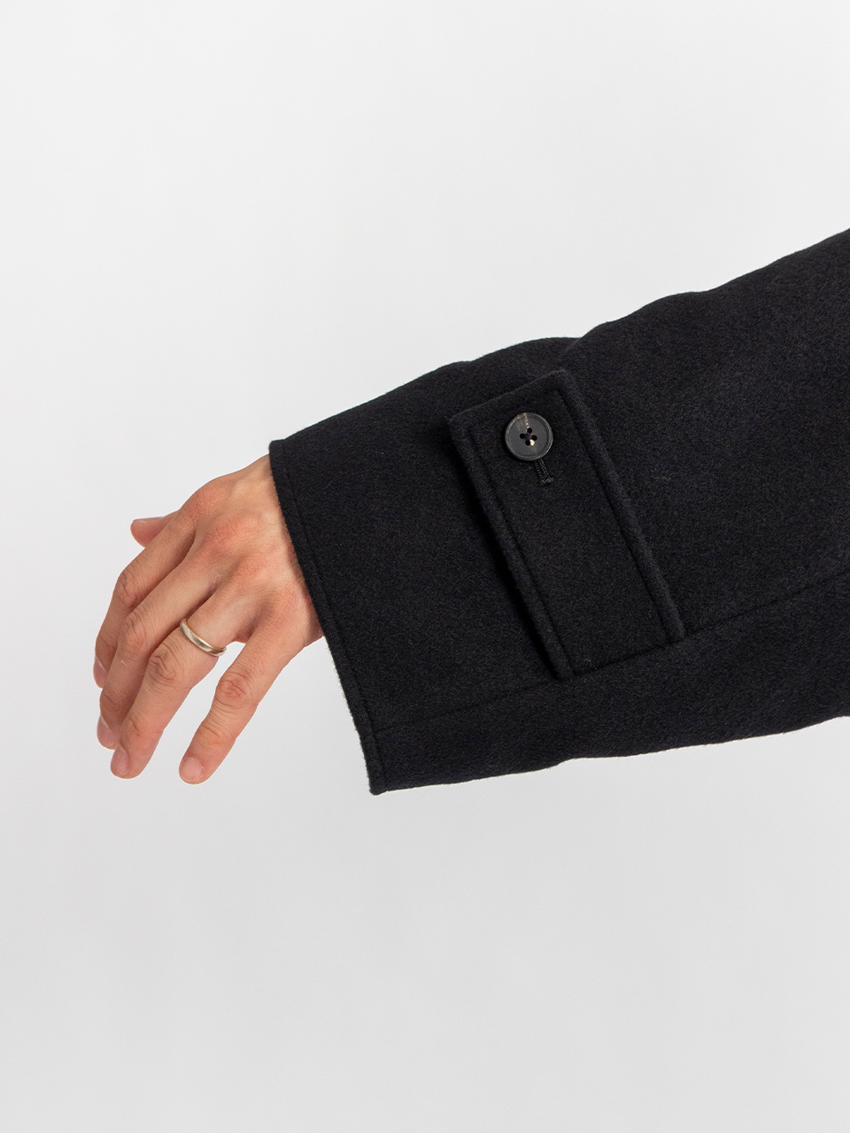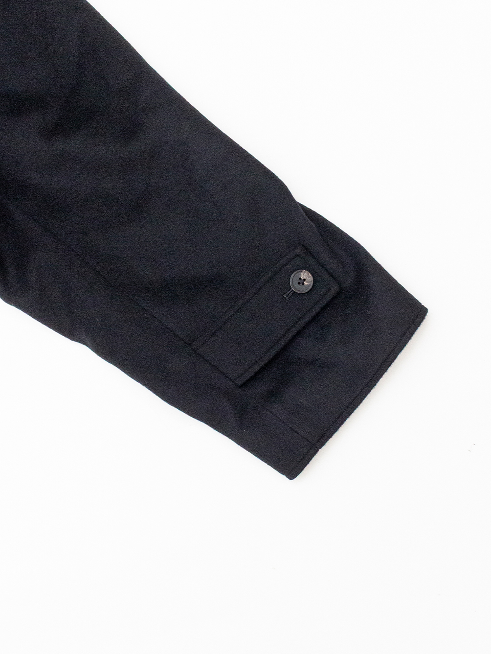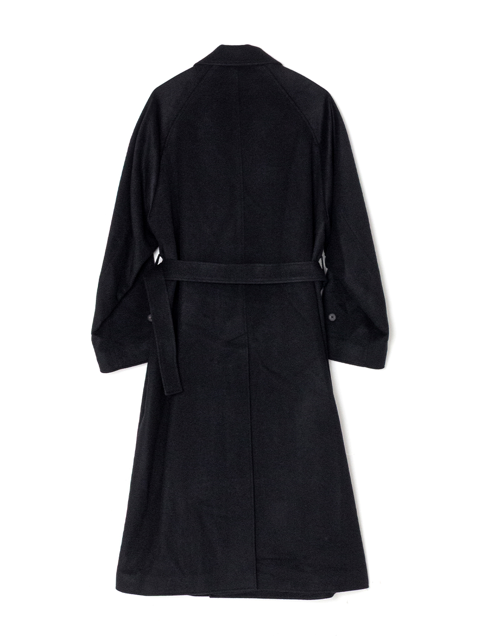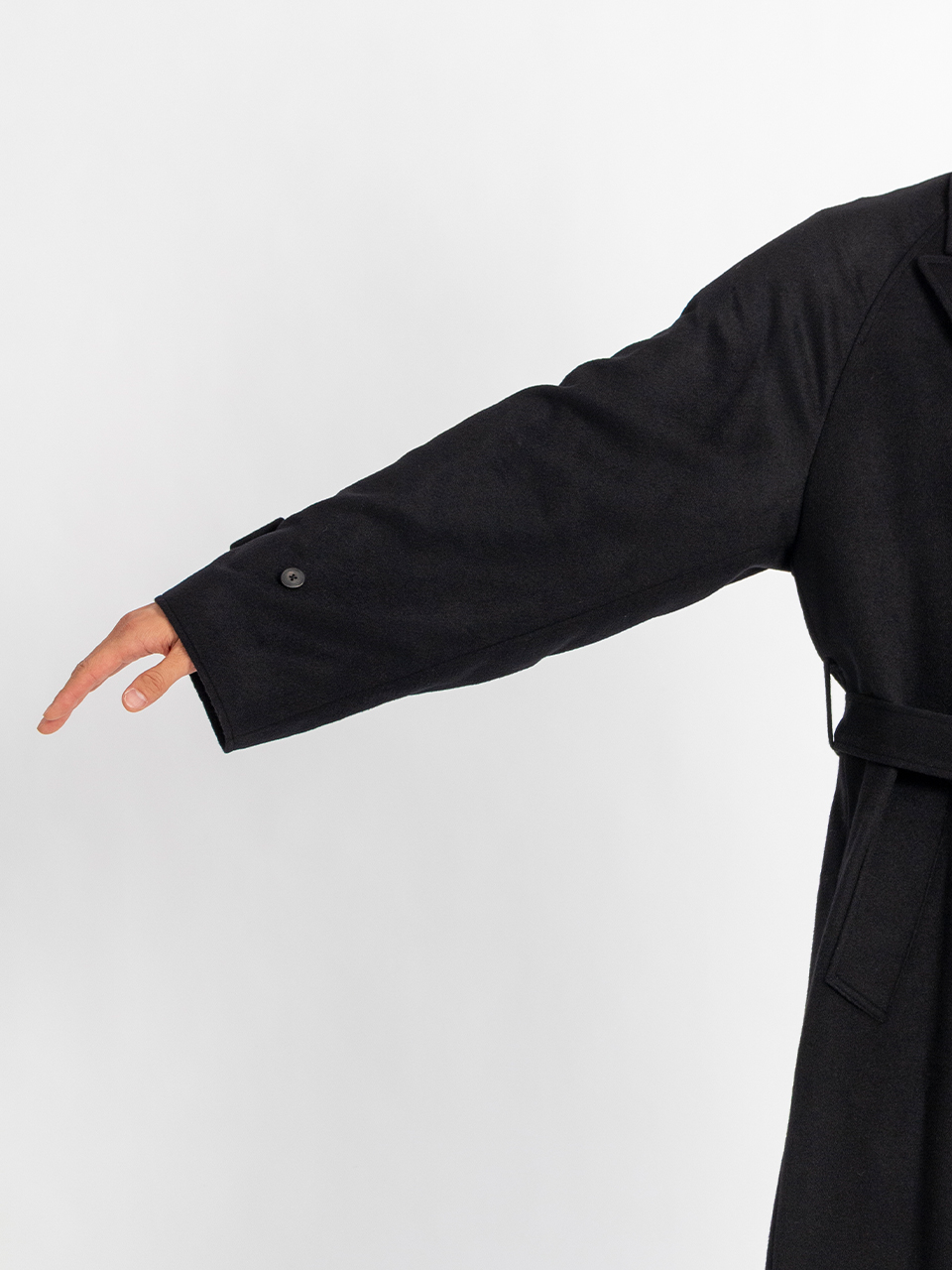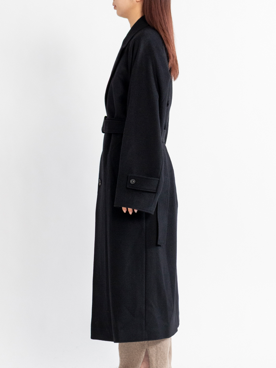 非常に柔らかく、膨らみのある内蒙古産のカシミヤをブレンドしたウールカシミヤビーバーを使用したピークトラペルコート。