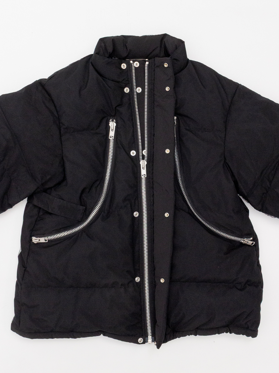 胸元のジップがポイントのダウンジャケット。
