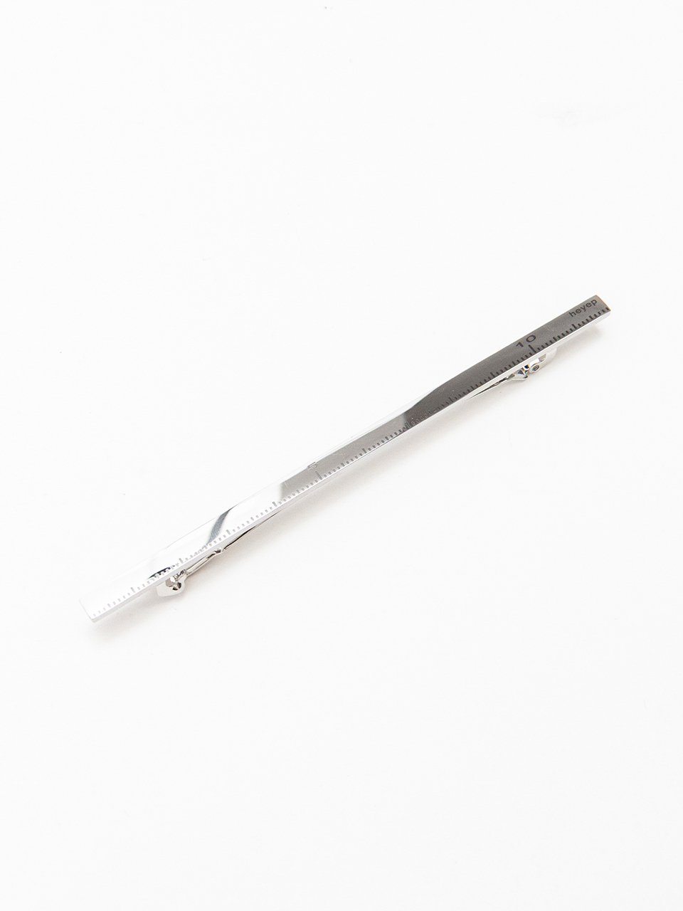 定規をモチーフにした、ユニークなメタルバレッタ。