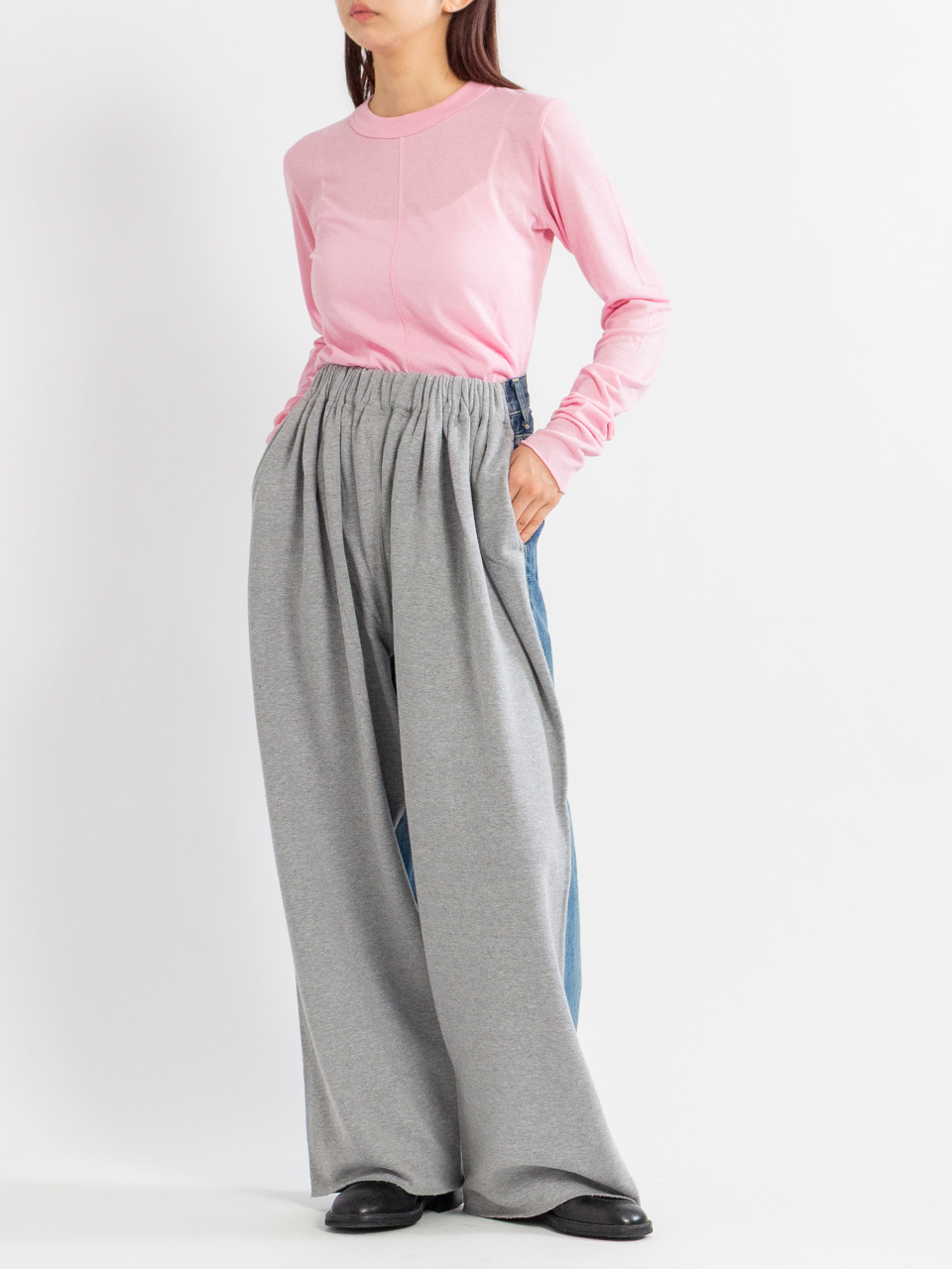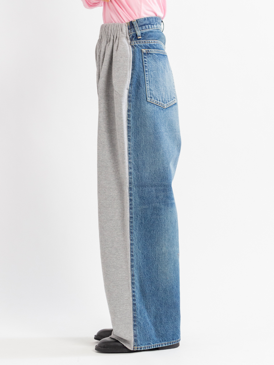 前がスウェット、後ろがデニム素材でユニークな印象です。