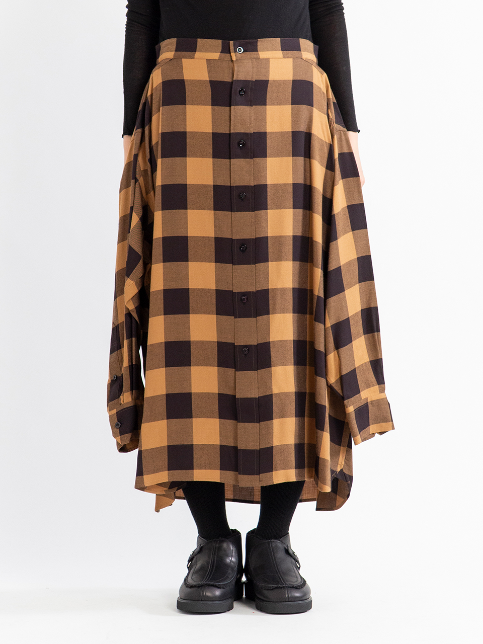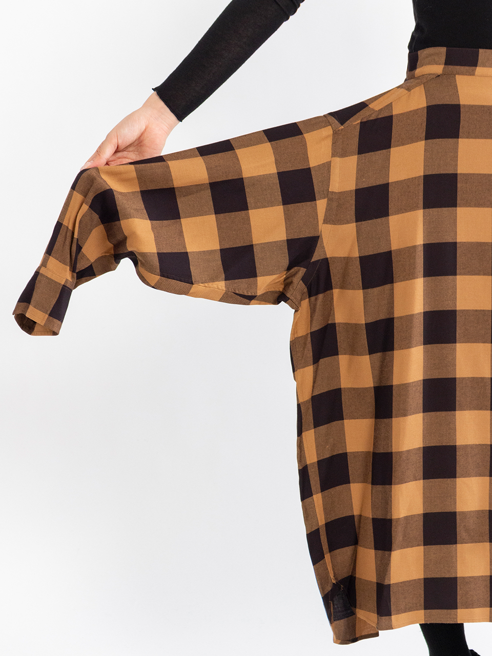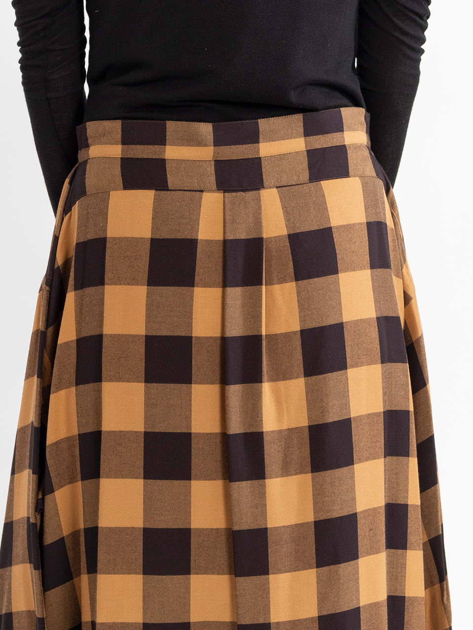 レーヨンツイルのバッファローチェック生地を使用したスカート。