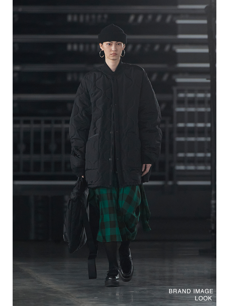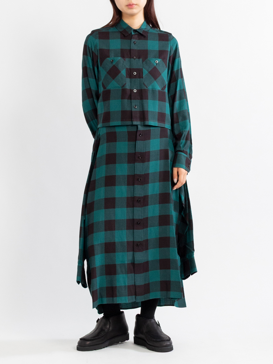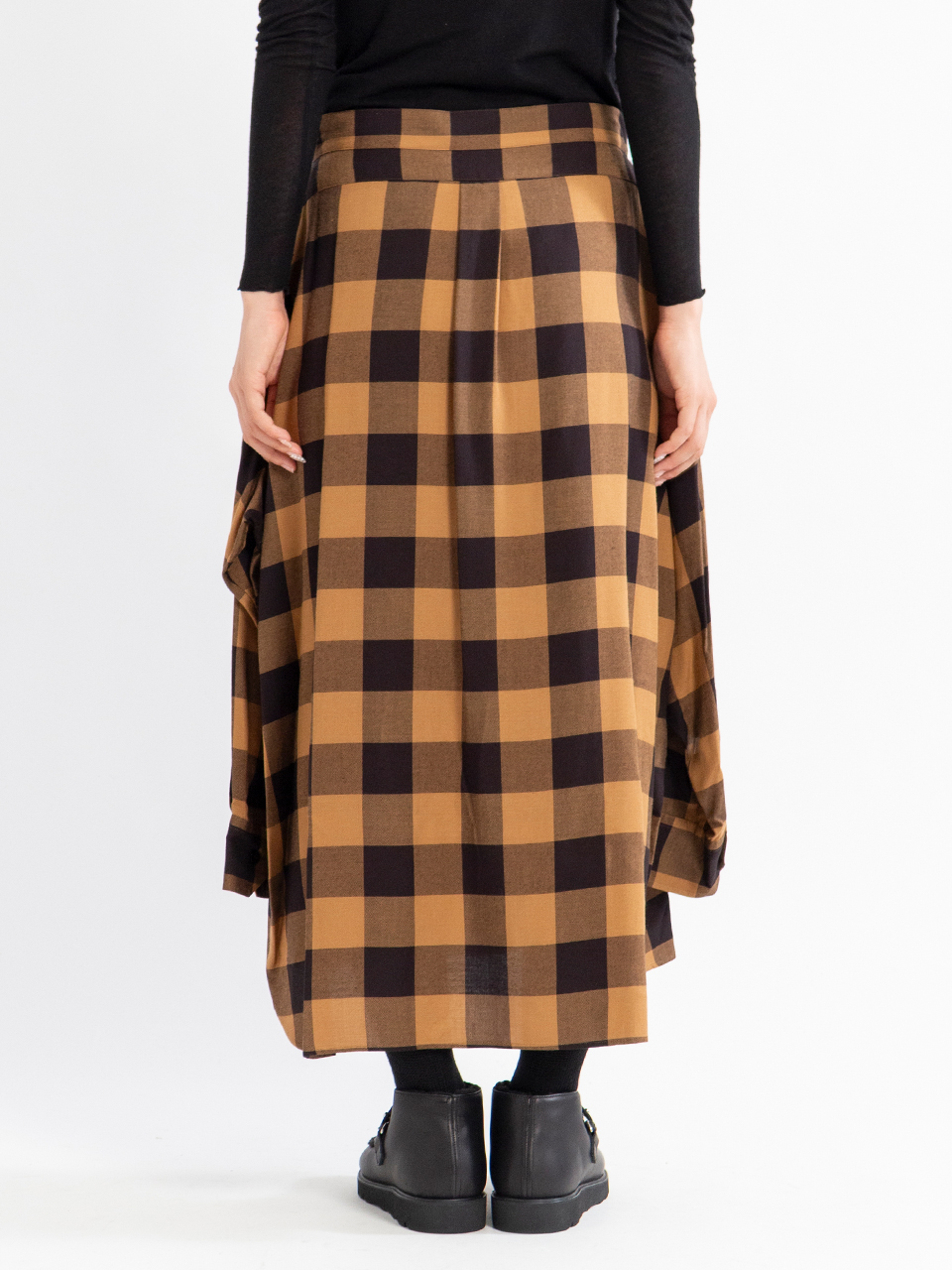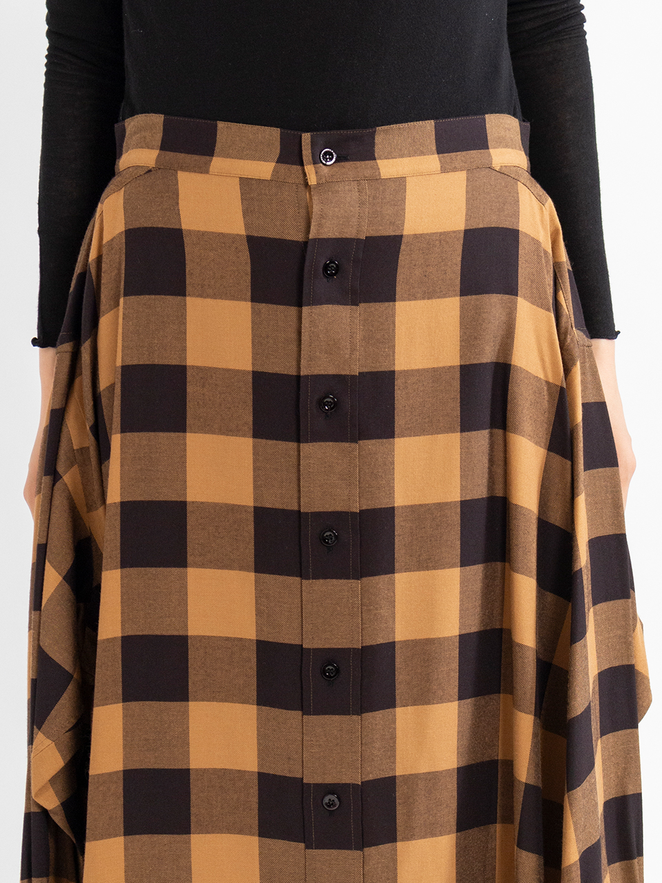 レーヨンツイルのバッファローチェック生地を使用したスカート。