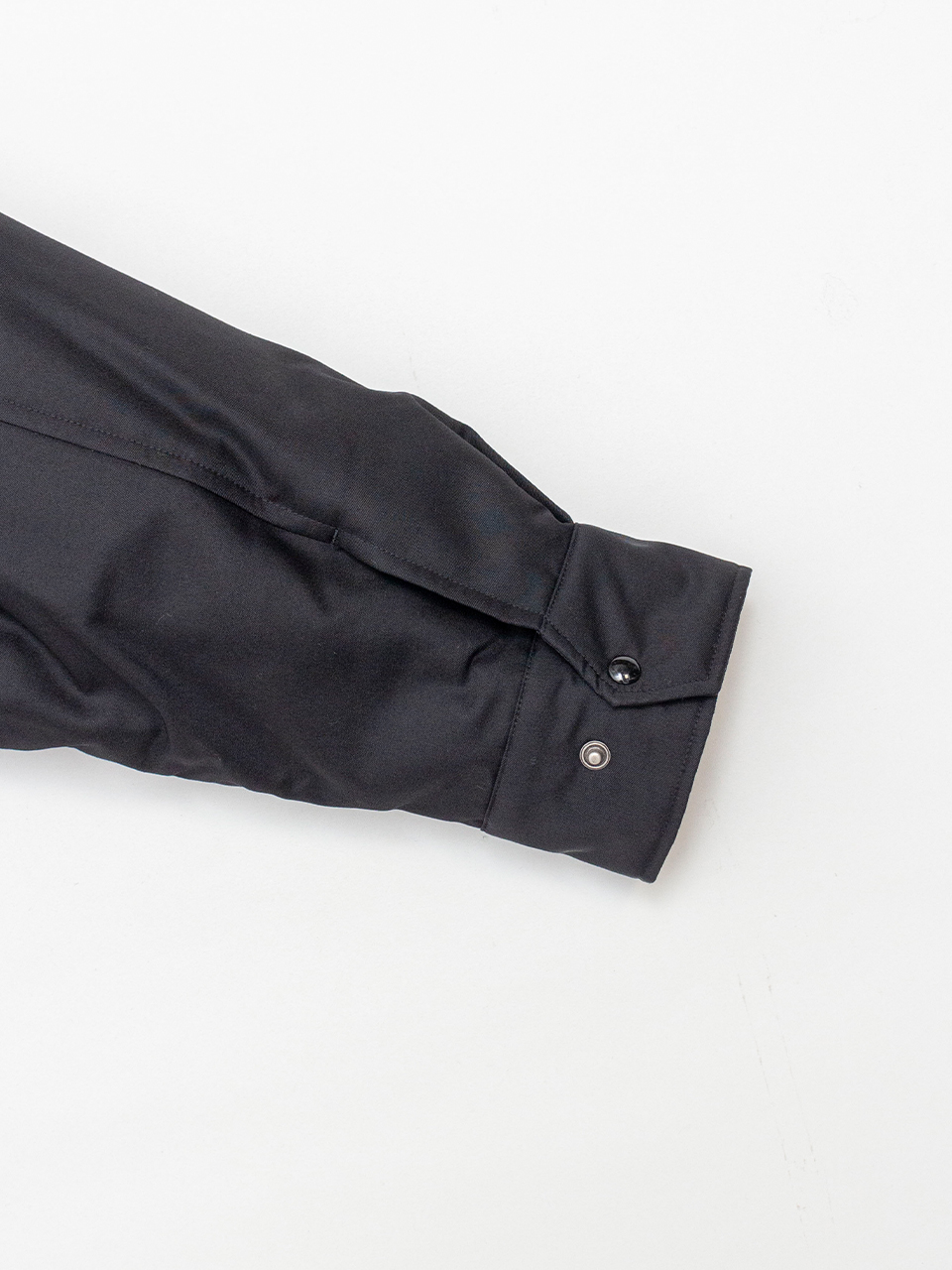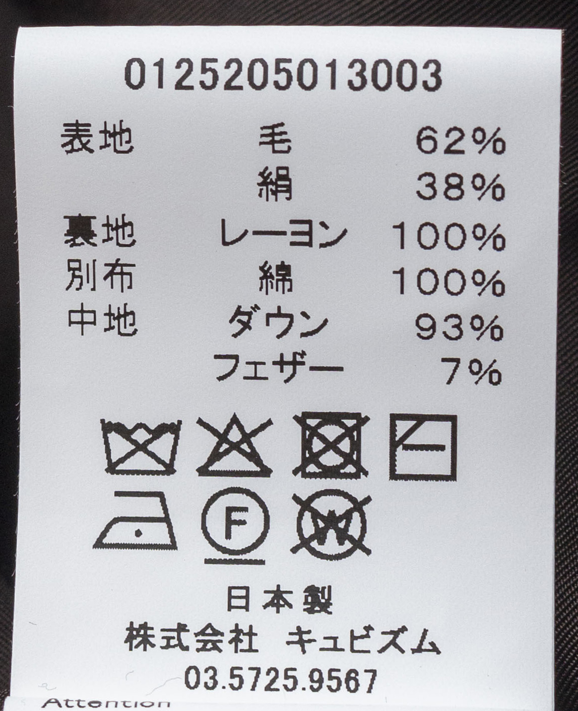 毛と絹で高密度に織り上げたアーミーツイル生地を使用したダウンジャケット。