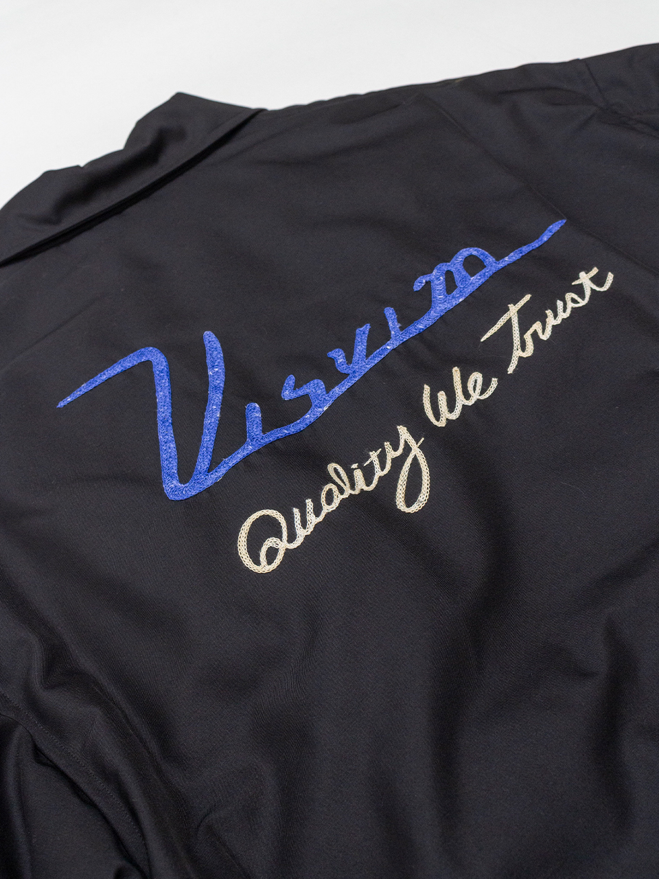 オリジナルスナップボタンや、左胸、背中のハンドル刺繍は1点1点技術の高い日本の職人が施したこだわりの一品。