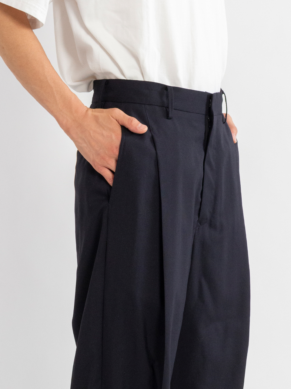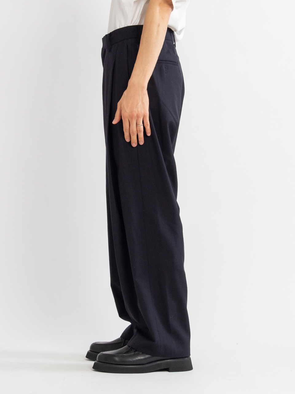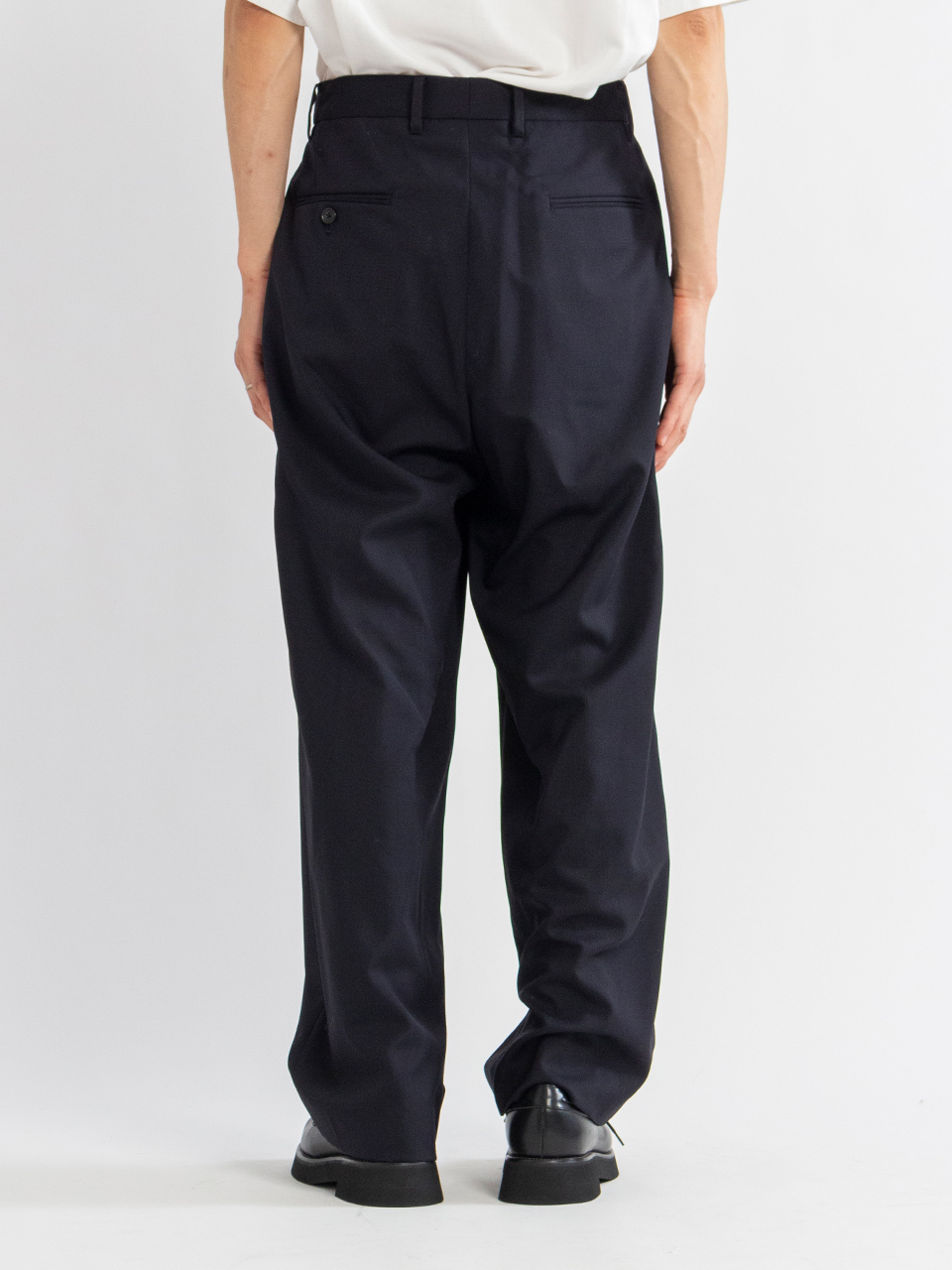 丸みのあるシルエットと深めのワンタックが特徴のチノパンツ。 打込みのあるしっかりとした上質な素材。