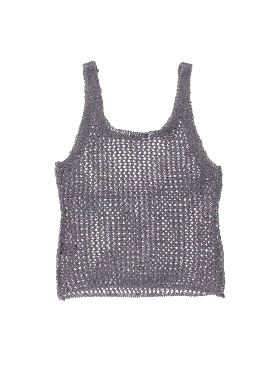 起毛加工したタムヤーンをメッシュ状に編み立てた 編み地のタンクトップ。