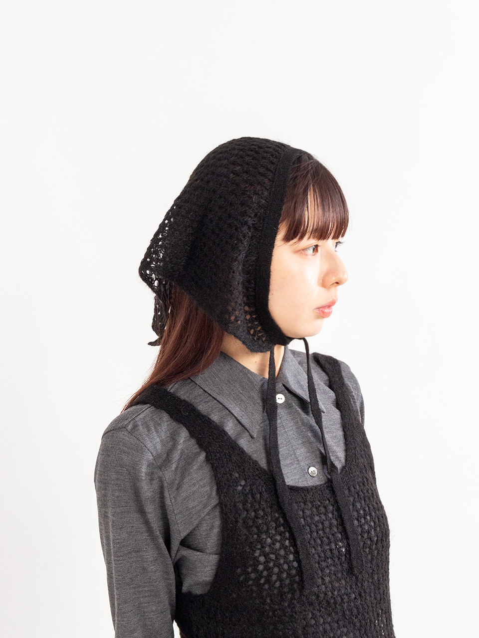 ヘッドアクセサリーとしてコーディネートの アクセントになるバブーシュカ。