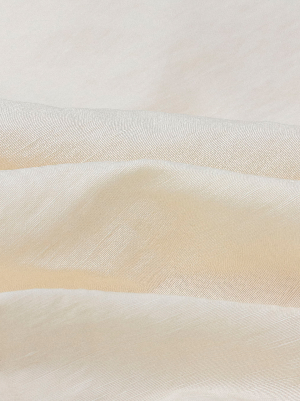 スポンジライクなナイロン糸とハリの強いリネンを交織したことによる独特なぬめりのある生地感が特徴です。
