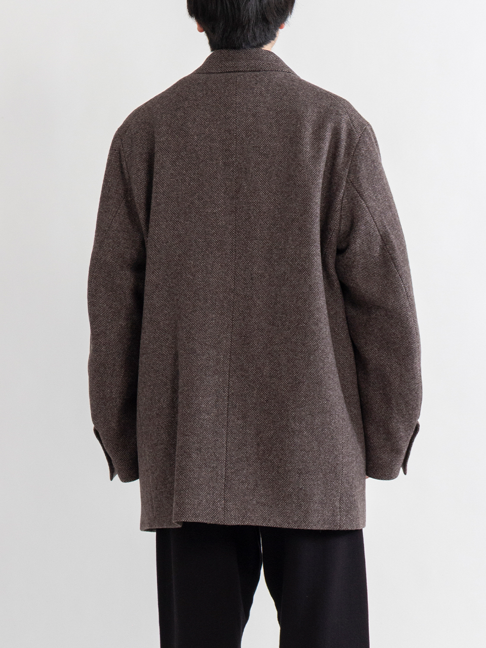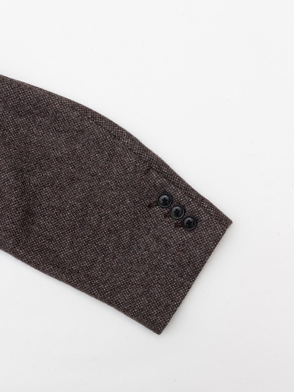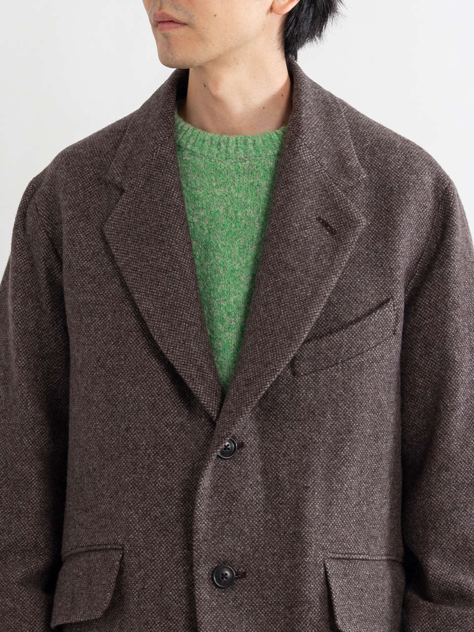 従来より糸本数を抑え、織密度を変えてあまく織り上げたツイード生地をオリジナルで製作しています。