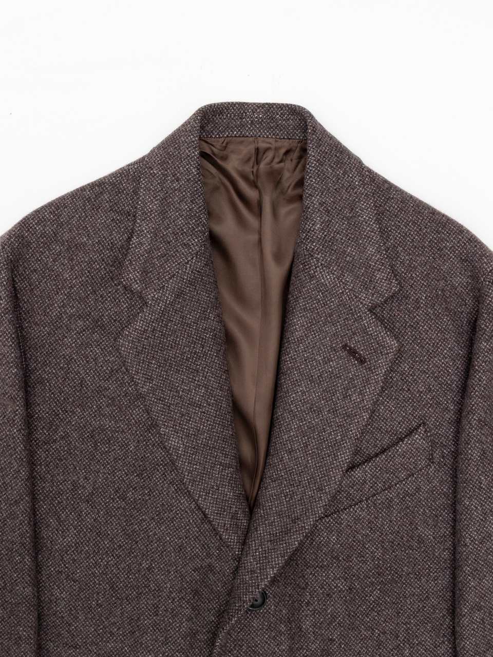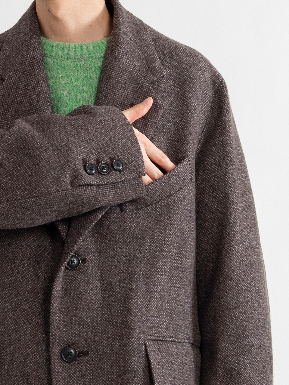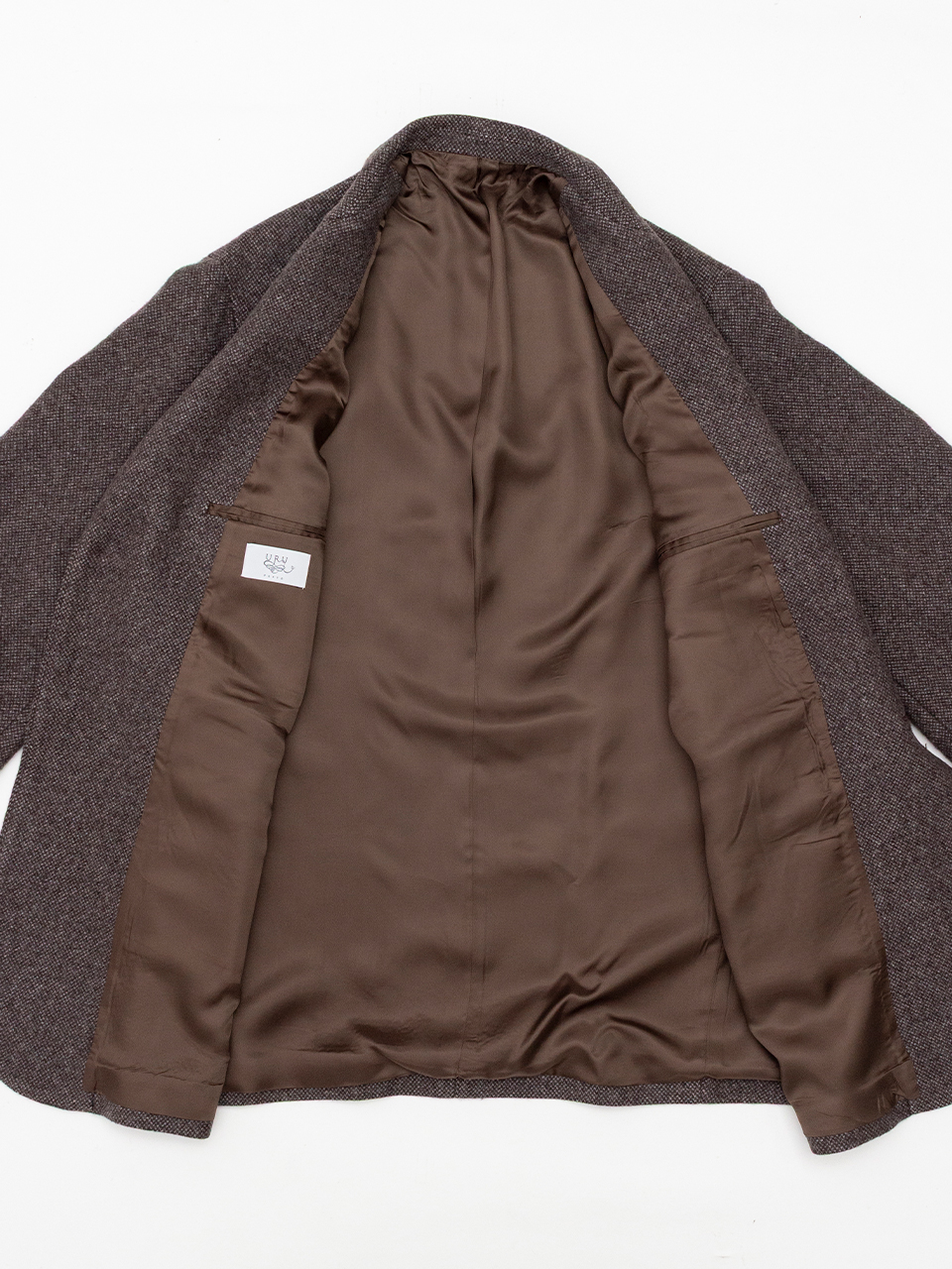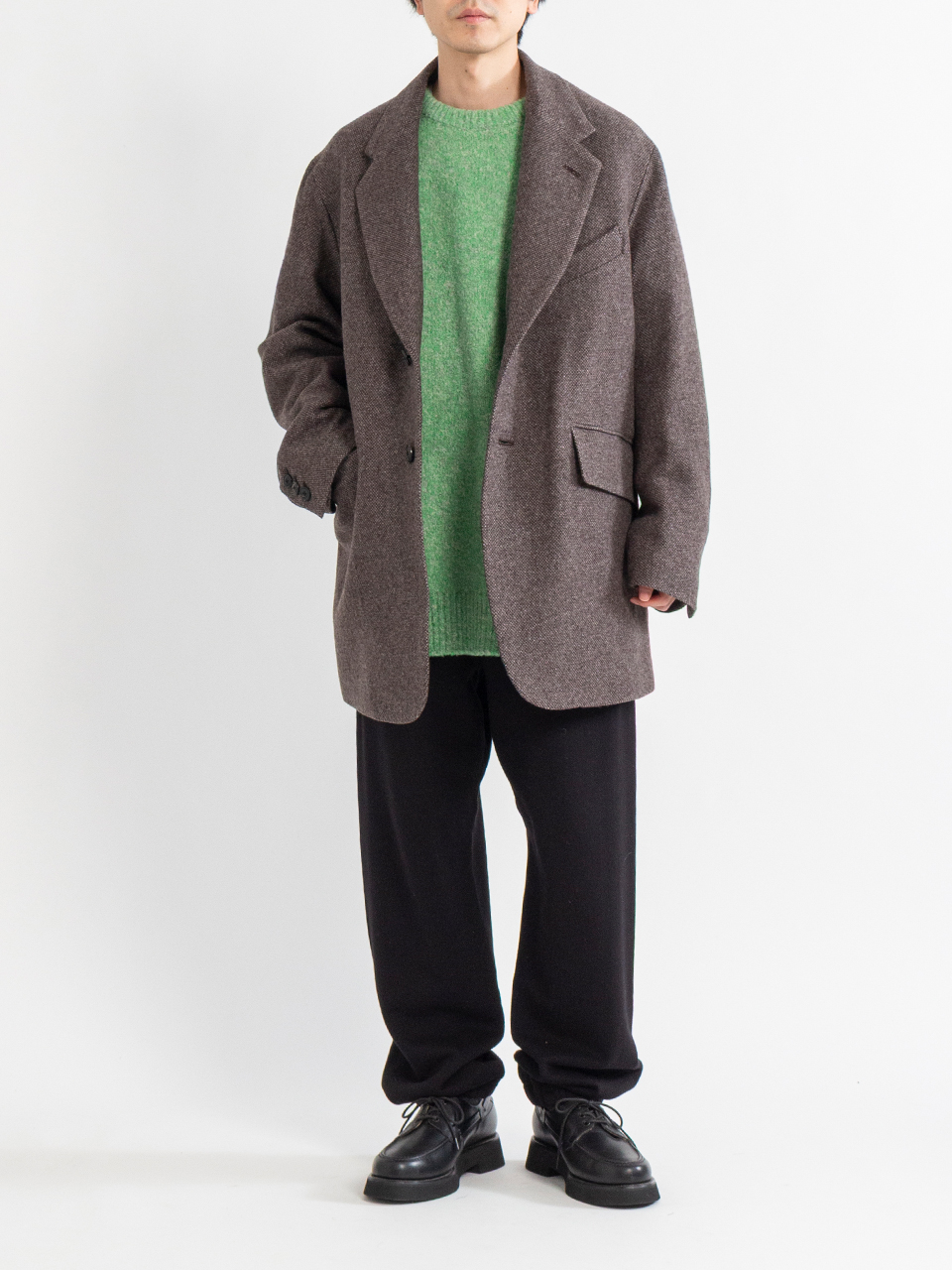 従来より糸本数を抑え、織密度を変えてあまく織り上げたツイード生地をオリジナルで製作しています。
