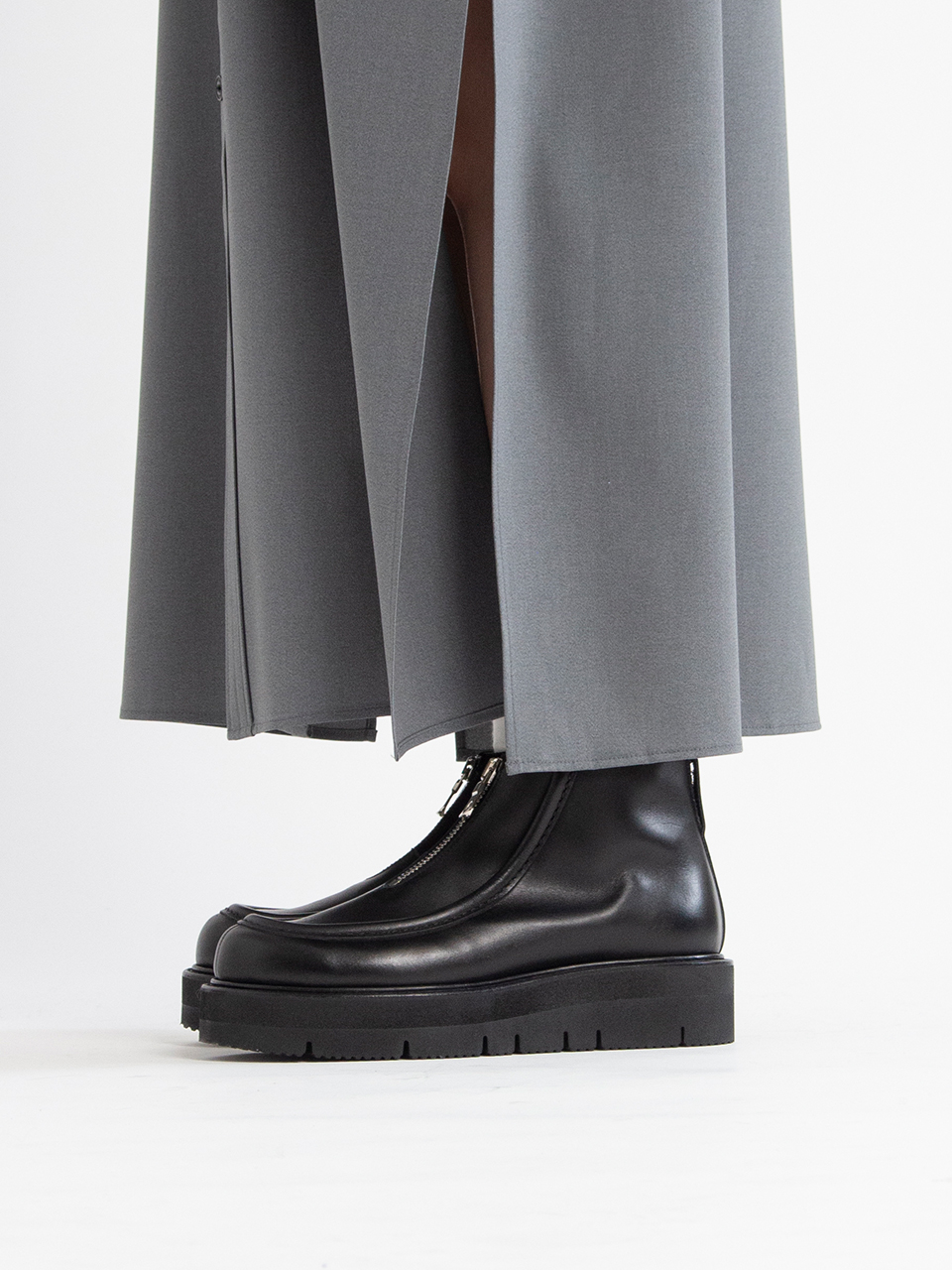 フロントにイタリア<RACCAGNI®>社製のファスナーを配し、モカシンステッチを大胆に施したモデル。