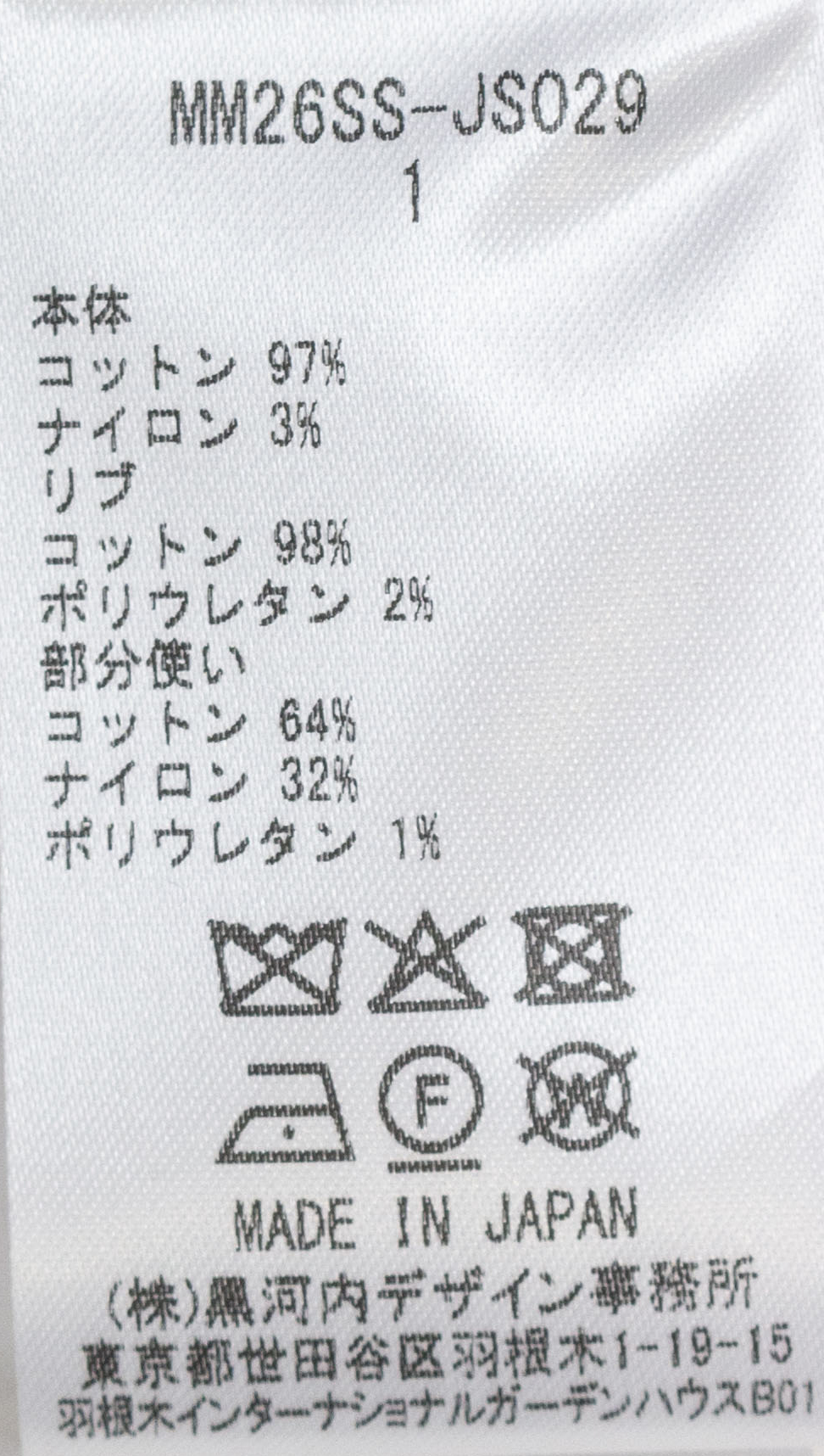 部分使い コットン64% ナイロン32% ポリウレタン1%