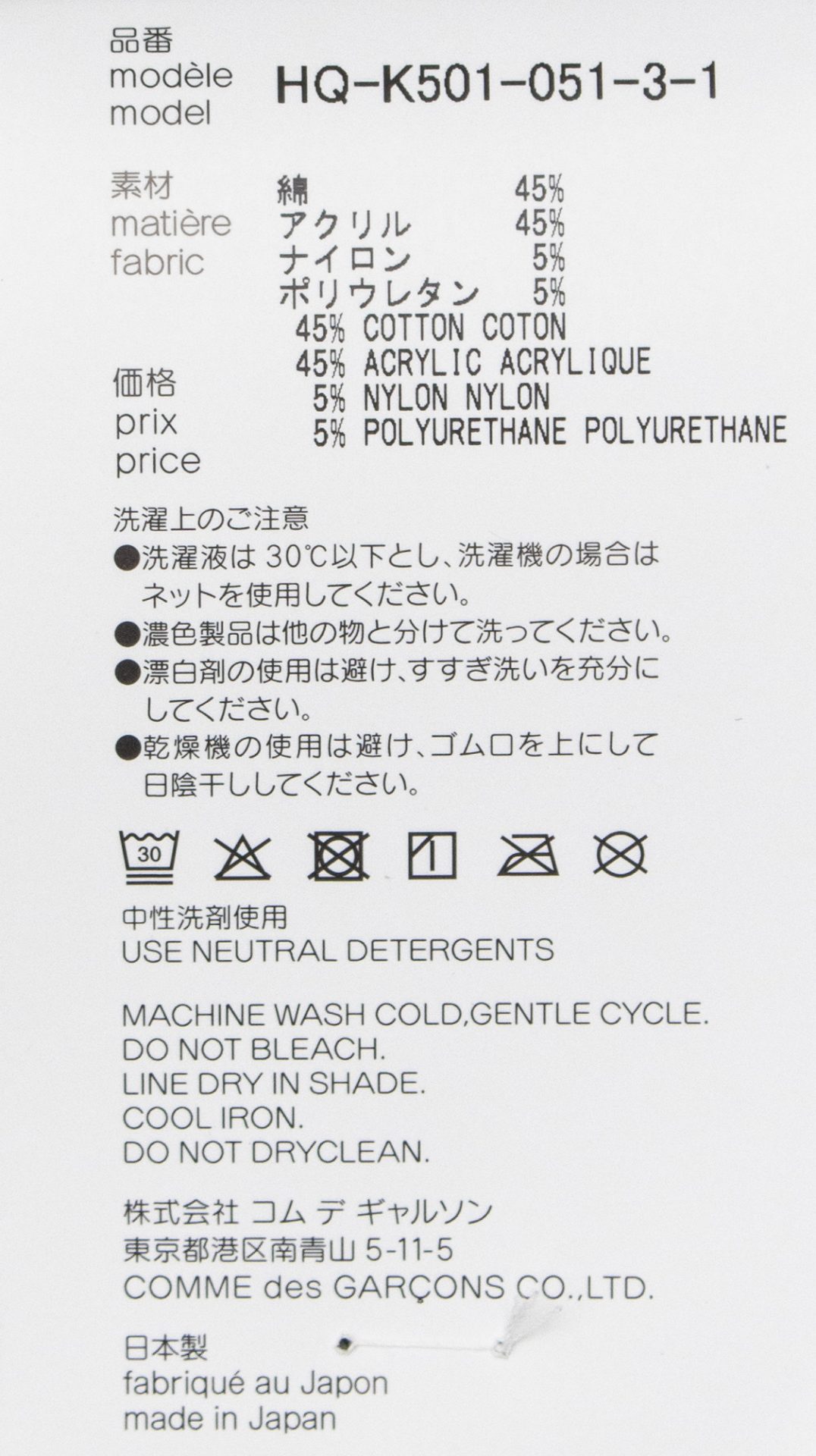 本体 綿45% アクリル45% ナイロン5% ポリウレタン5%