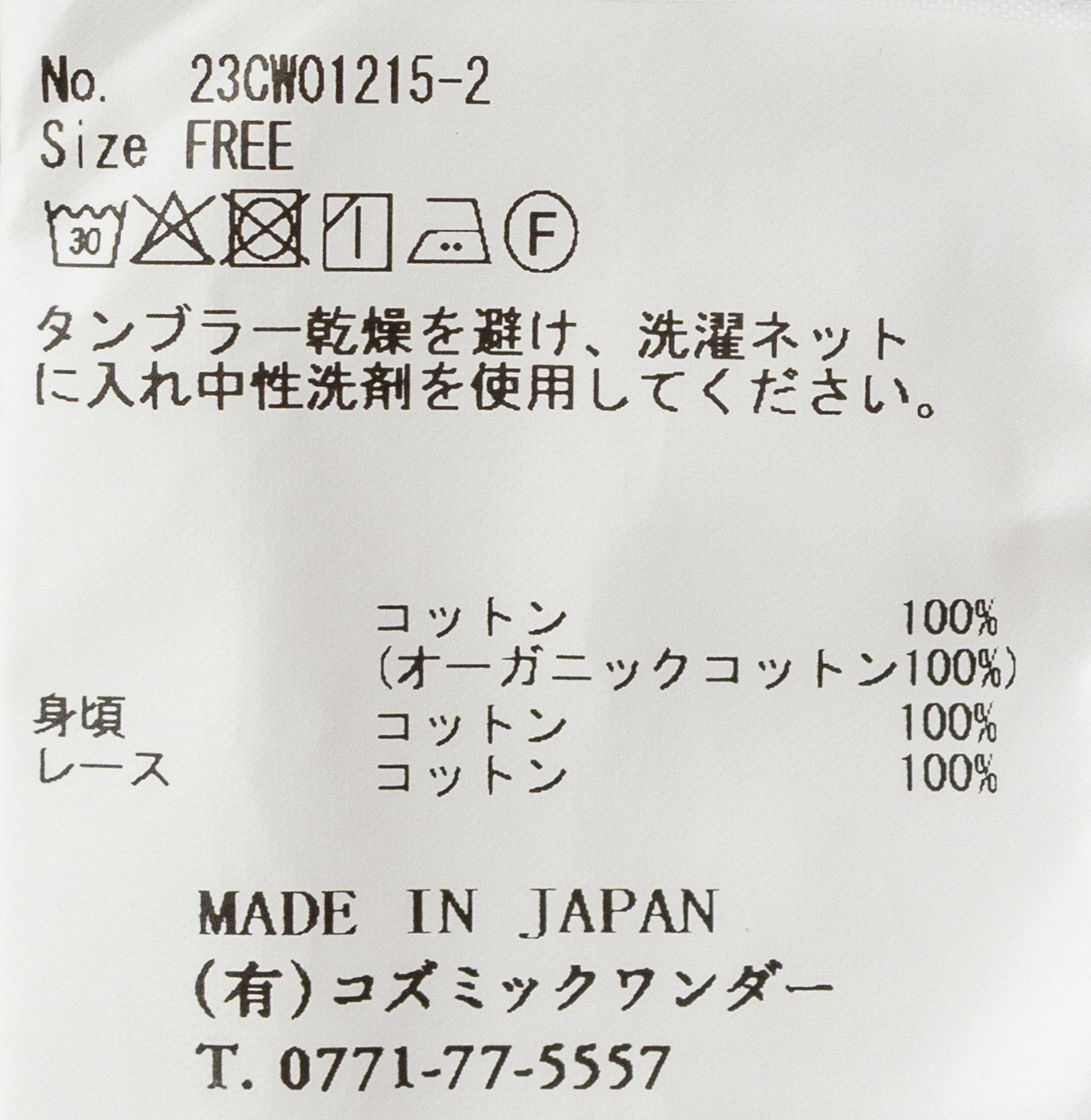 本体 コットン100%